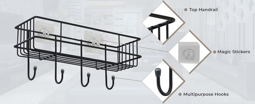 • Multipurpose Use: The attached hooks let you hang towels, brushes, keys, or loofahs.